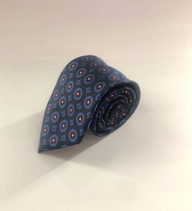 BLUE DOTTED GEOMETRIC PATTERN TIE – T0011